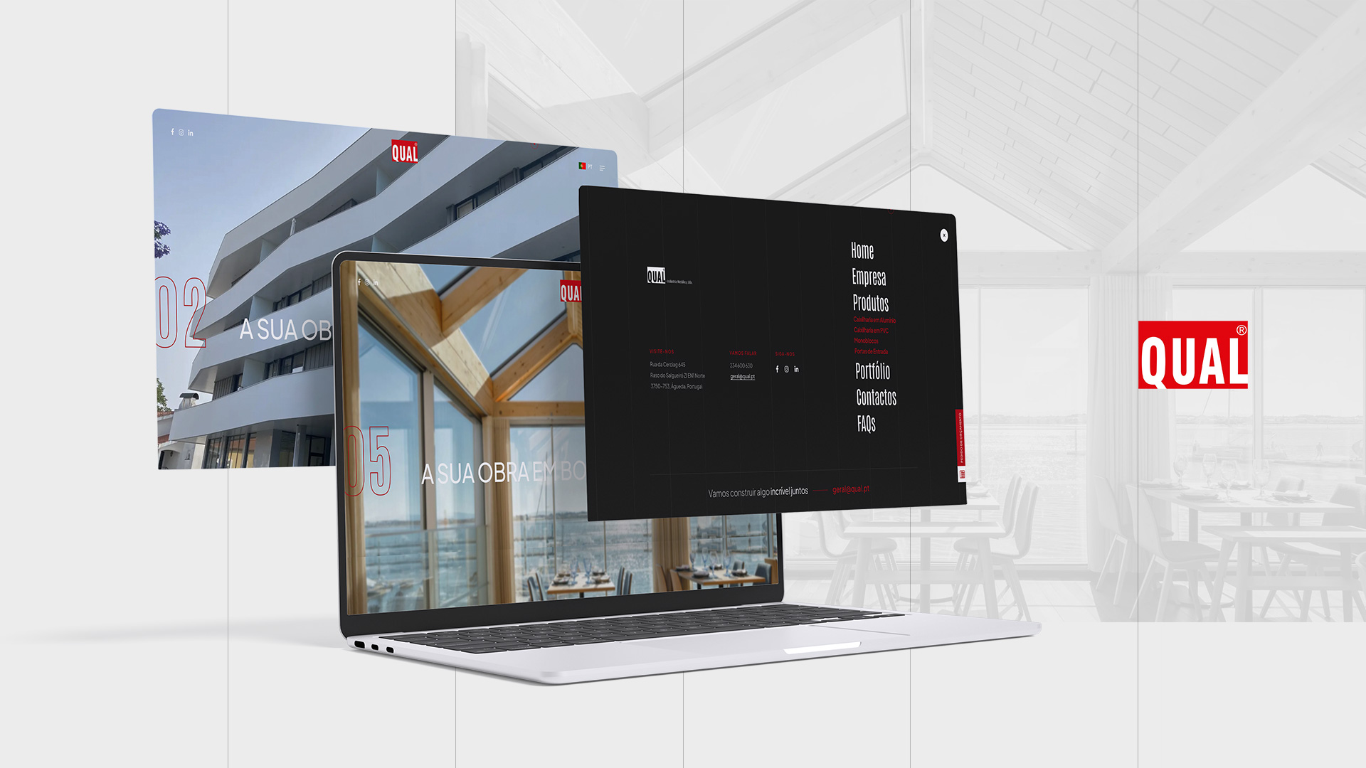 A Qual, especialistas em soluções de caixilharia, aposta num website com foco na valorização dos projetos e na experiência do utilizador. O layout combina a identidade industrial da marca com linhas simples e funcionais destacando os serviços e o seu portfolio. A estrutura do site reforça e optimiza a presença digital da empresa.